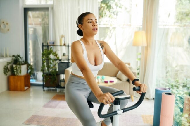 - Dica extra: Posicione a bicicleta em um canto iluminado, perto de uma janela ou com vista para a televisão. Assim, treinar fica mais interessante e menos monótono.
